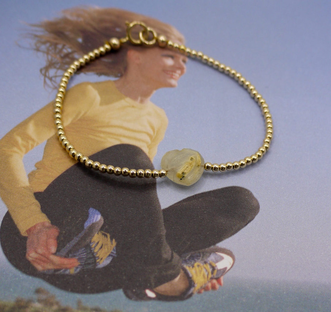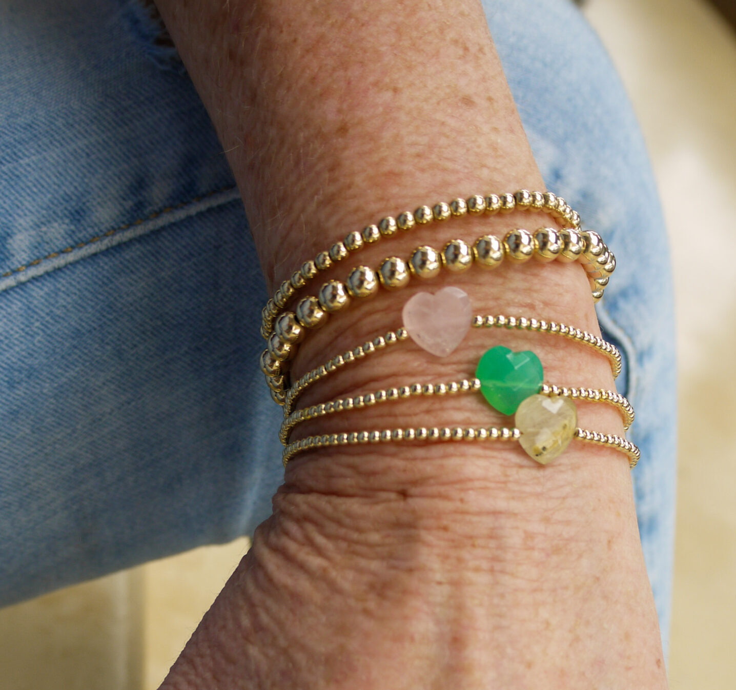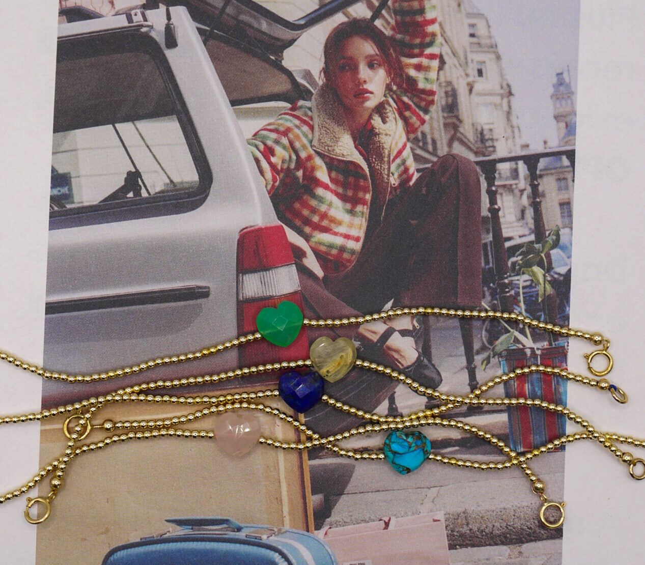 Ce bracelet raffiné en or 14 carats, gold filled, orné d’un coeur facettée en pierre fine, se décline en lapis lazuli, en chrysoprase, en quartz rose, en quartz rutile et en turquoise. Une touche élégante et personnalisée à porter chaque jour.