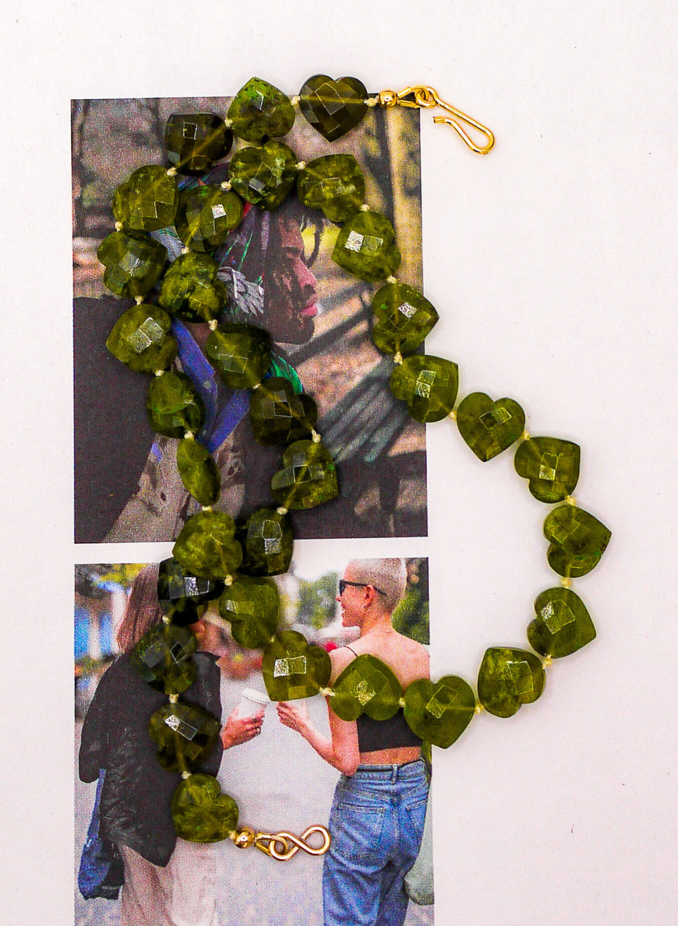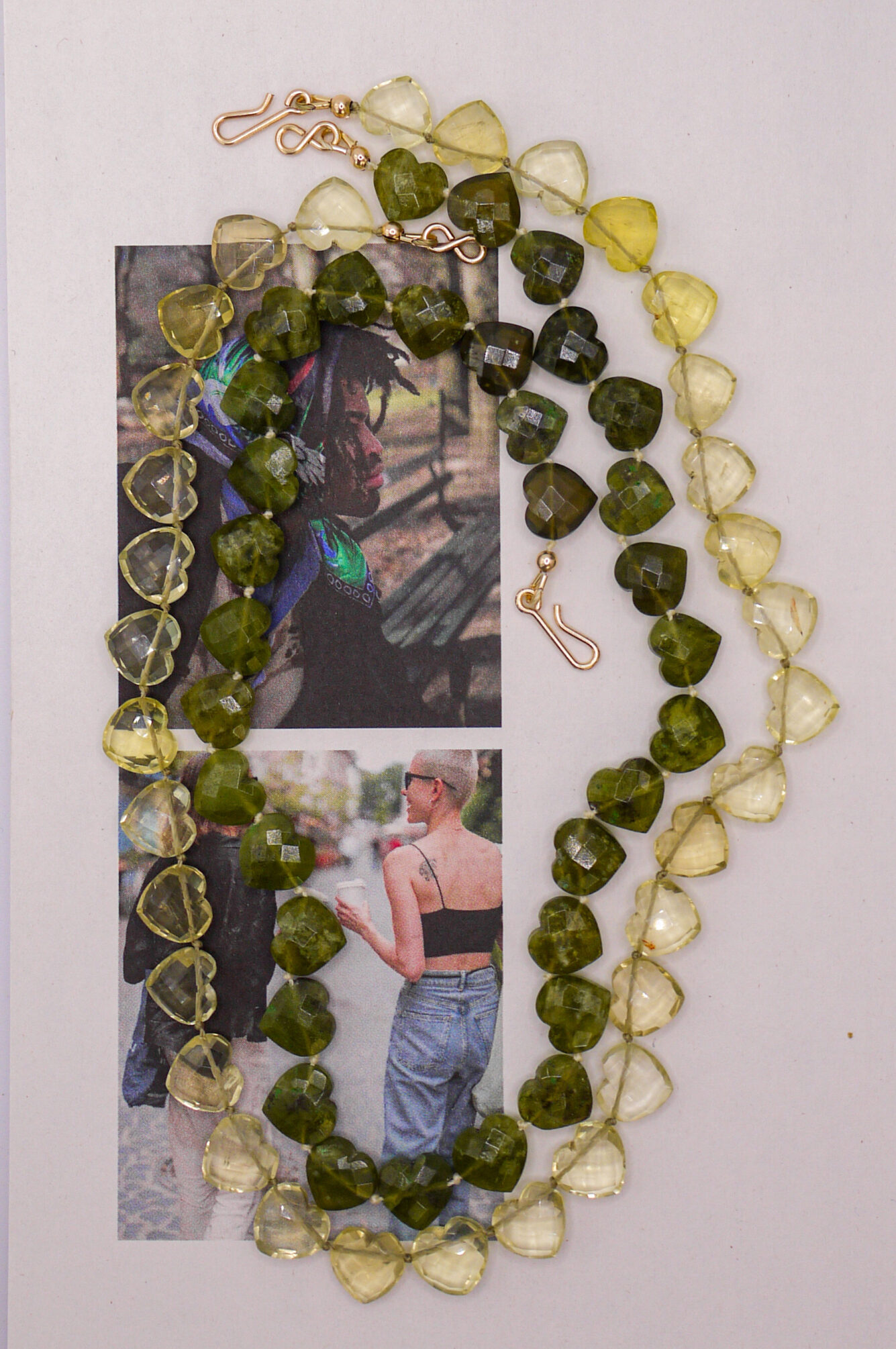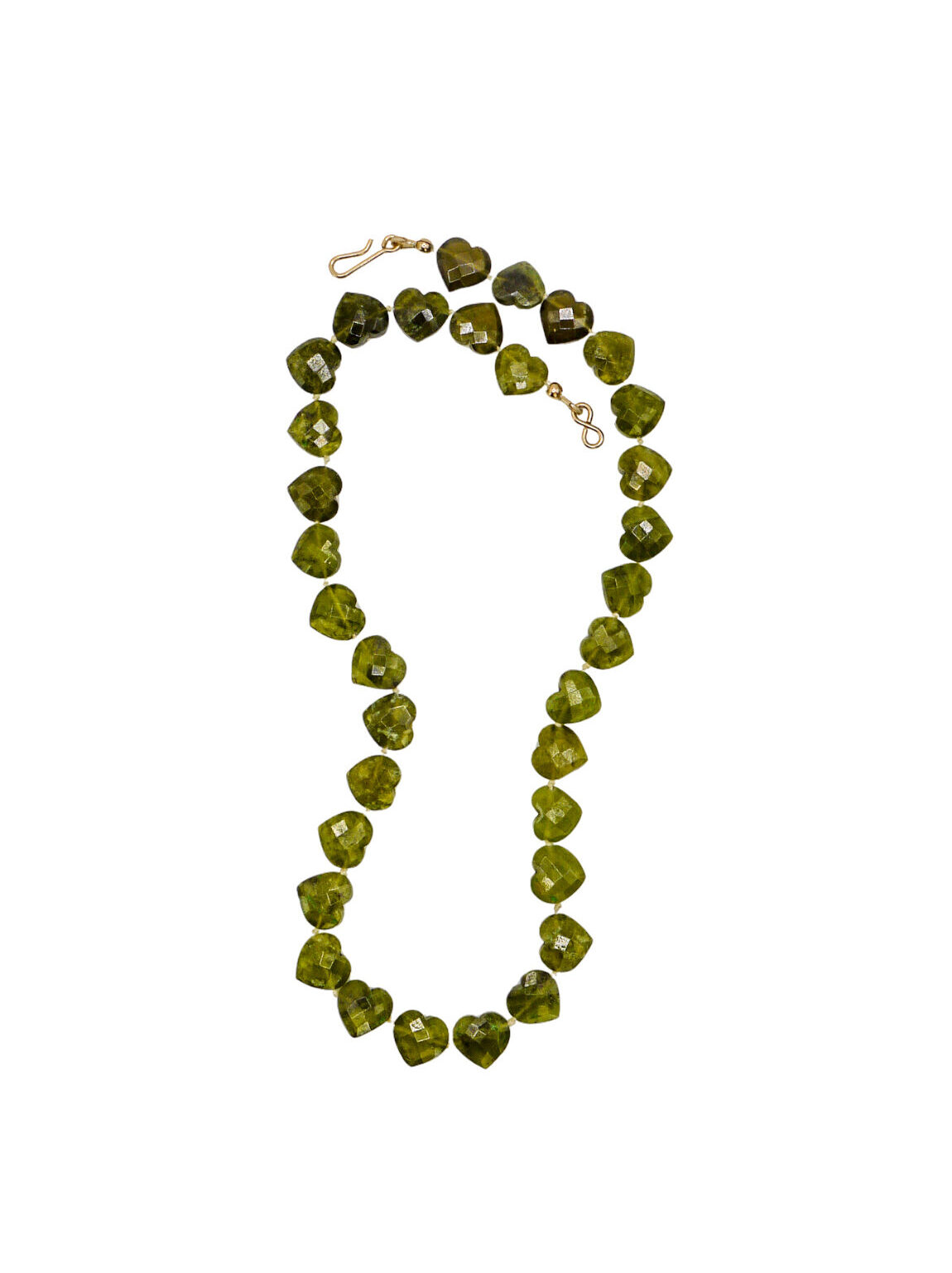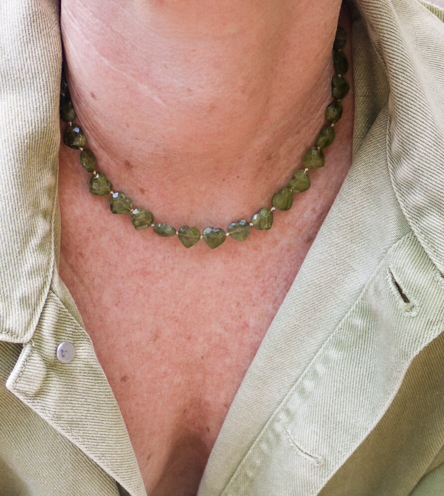 Collier Âme Cœur en vessonite. Les pierres taillées en forme de petits cœurs facettés sont délicatement sculptées à la main. Irrésistible!