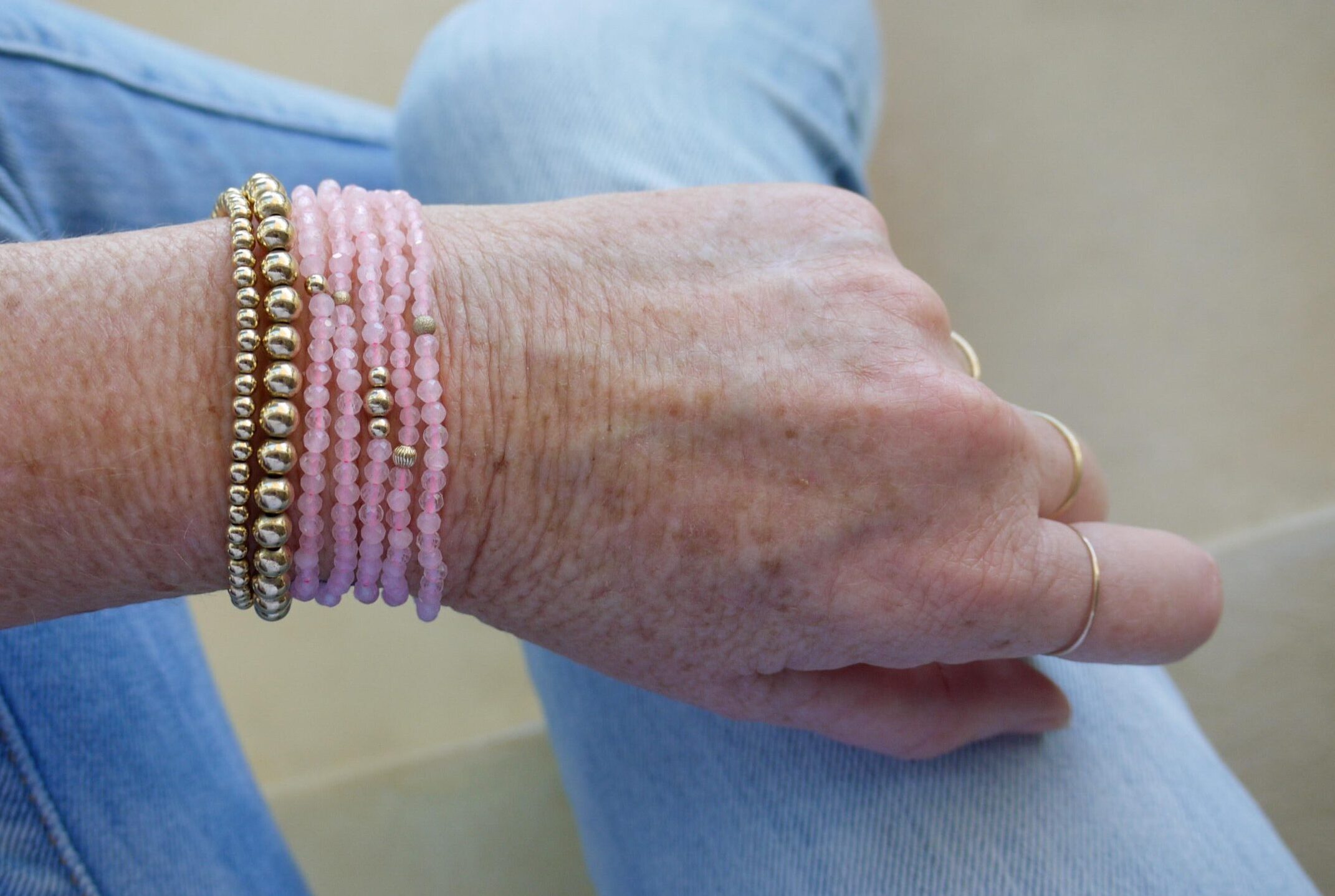 Bijou 3 en 1 en quartz rose et or 14 carats, gold filled.