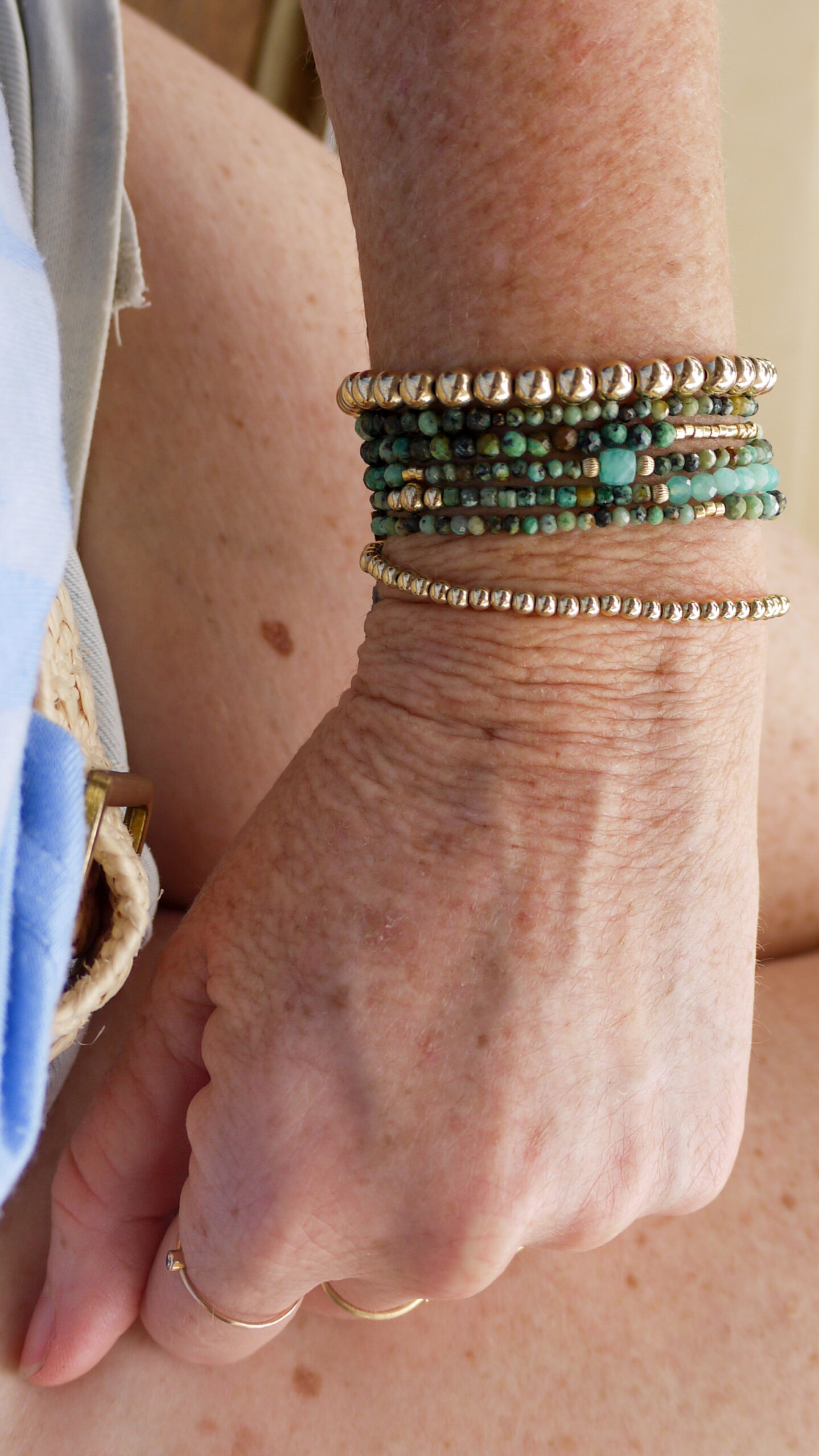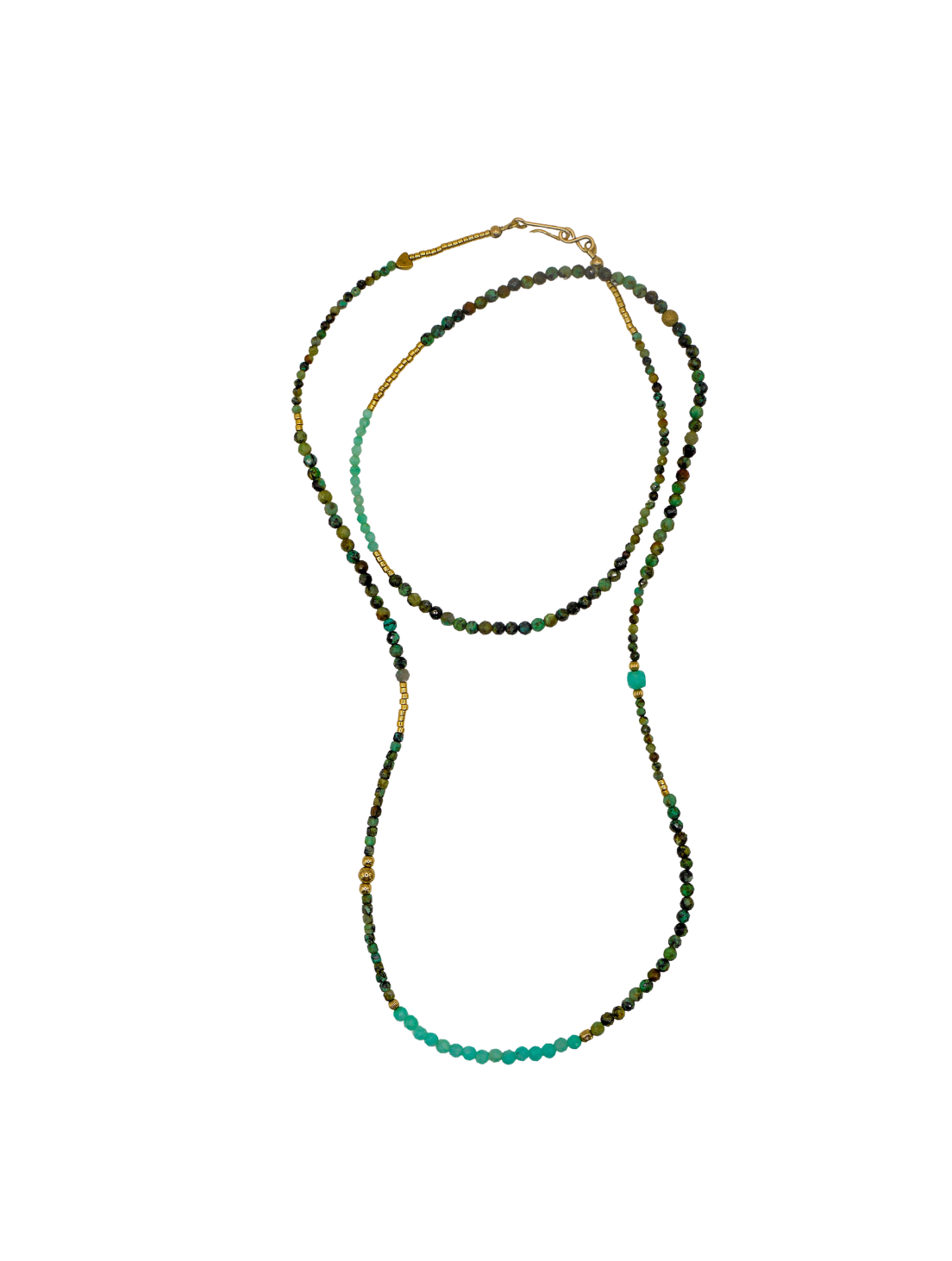 Bijou 3 en 1 en turquoise africaine, amazonite et or 14 carats, gold filled.